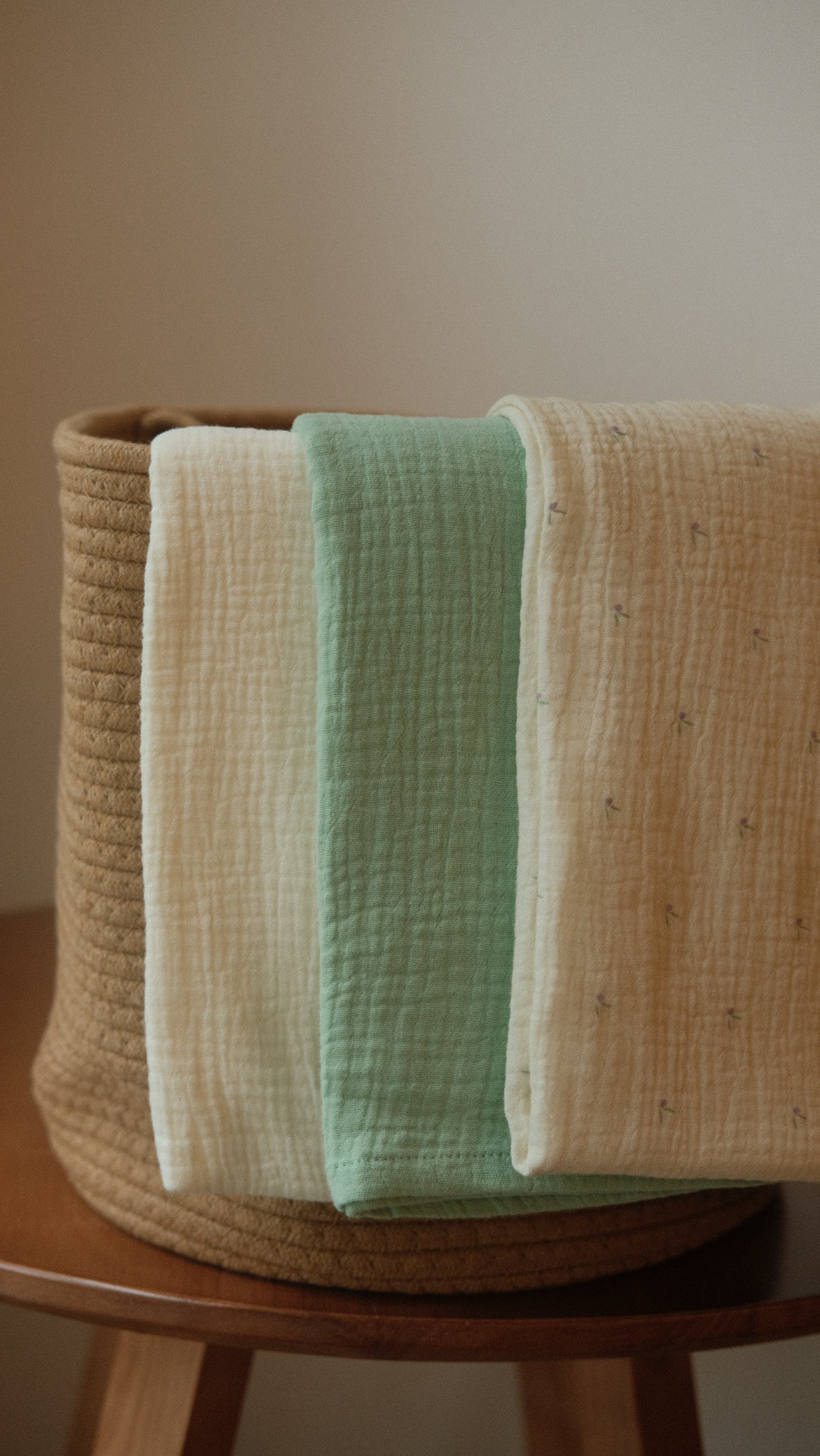 Organic Muslin Cotton Swaddle - Lightweight and breathable, designed to keep baby snug and secure. Versatile as a swaddle, stroller cover, or soft nap time layer.