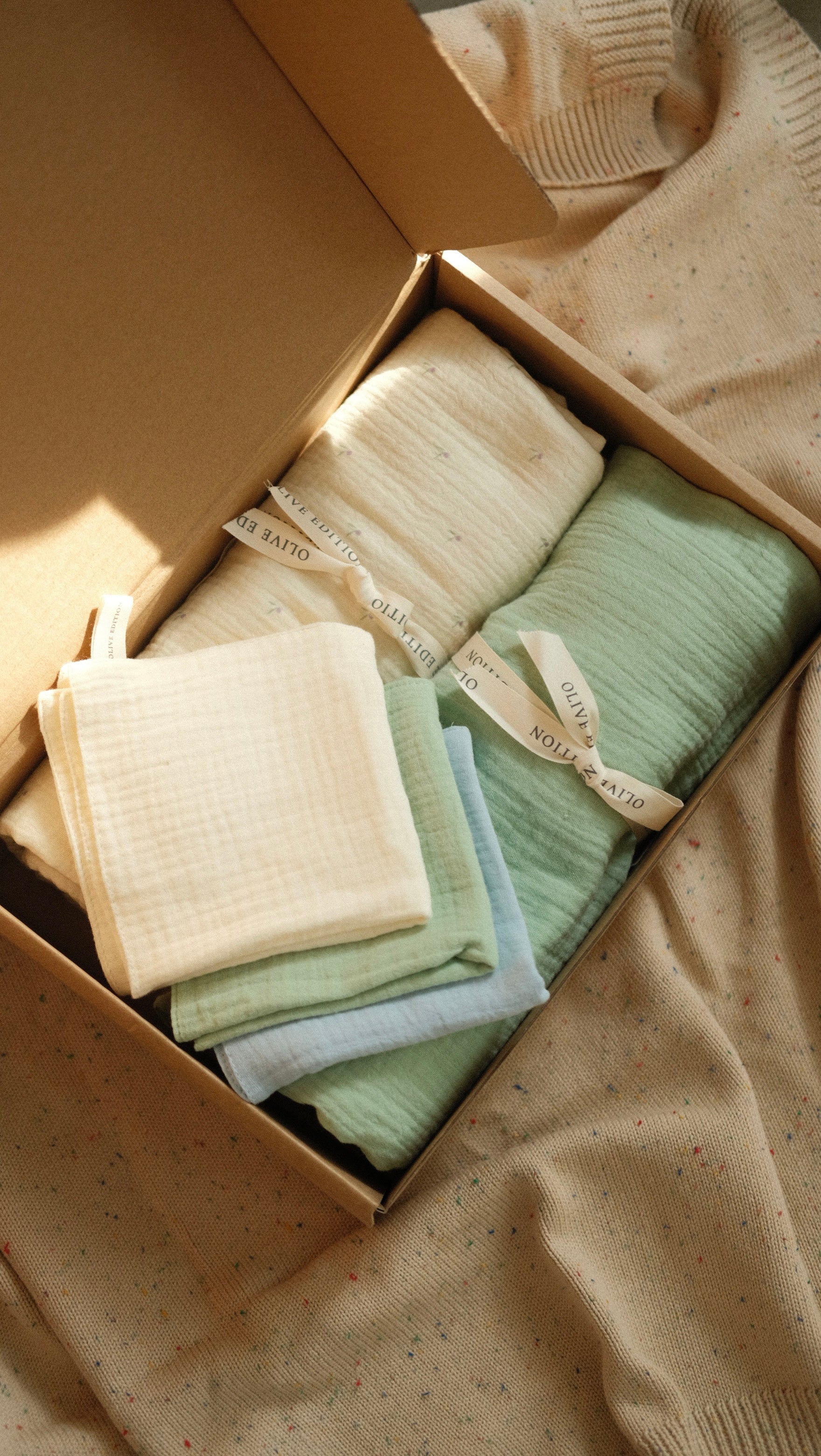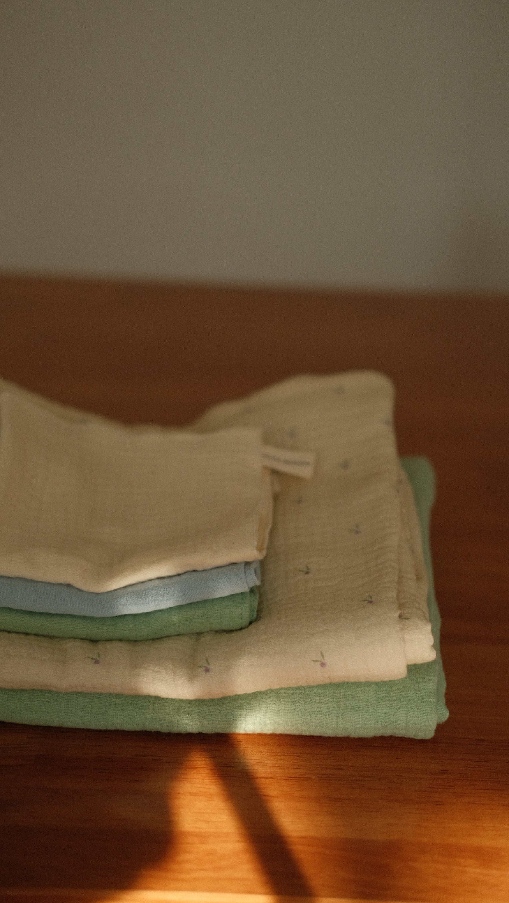 A cozy bundle for everyday moments. Soft, breathable essentials that grow with them. Use it for swaddling, wiping, snuggling, or soothing — a perfect pairing for new parents on the go. Crafted from GOTS & OEKO-TEX®️ certified organic cotton.